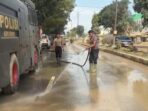 Minimalisir Debu Pasca Banjir, Polri Lakukan Pembersihan dan Penyiraman Jalan Protokol Aceh Tamiang
